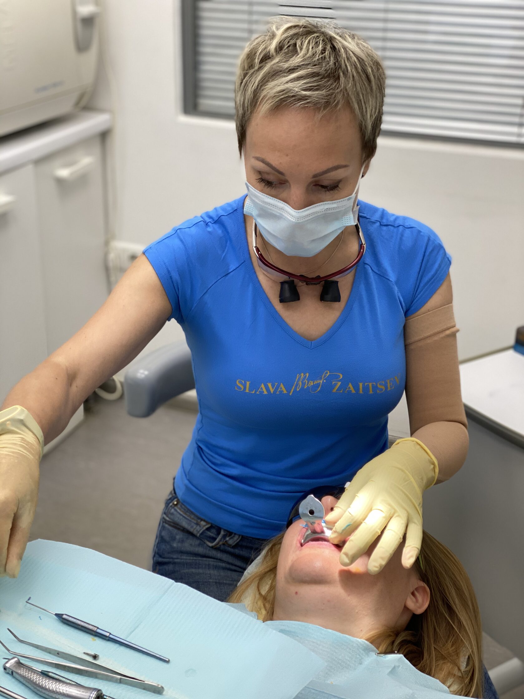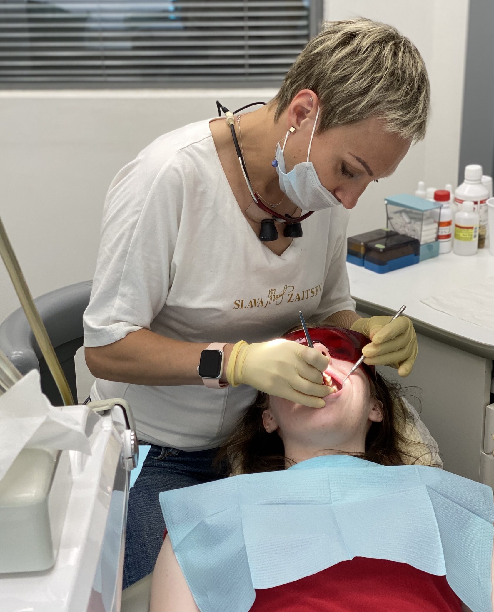 Сделали тонкие керамические виниры только на четыре передних верхних резца. Было важно воссоздать цвет нижних передних резцов и сделать искусственные зубы неотличимыми от своих.