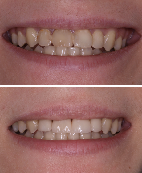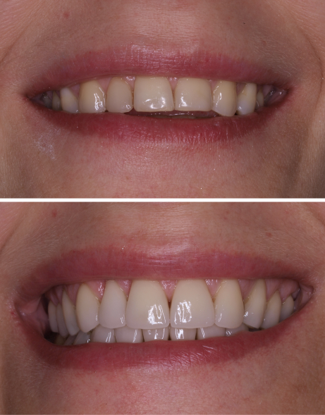 Пожелание пациенки - не трогать нижние передние зубы, но сделать улыбку светлее, выразительнее, при этом сохранив ее естественность